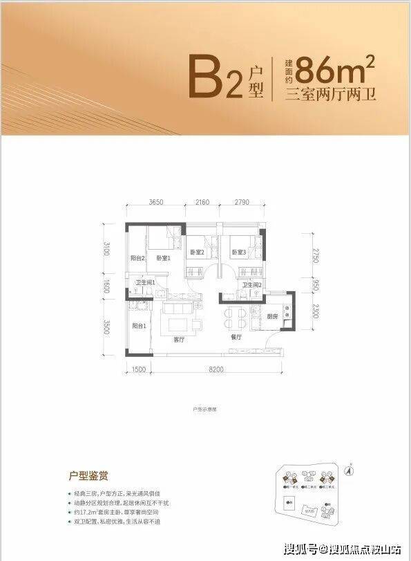 86㎡户型:3房2厅2卫