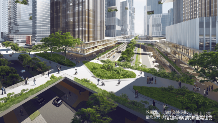 3、立体交通——未来片区多层次、多维度的立体绿色出行体系。双地铁上盖,市政规划的空中连廊系统,“0”距离接驳全城。