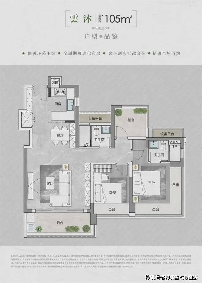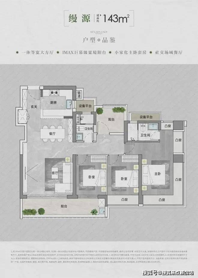 • 得房率:通过创新性的飘窗、双阳台改造、设备平台赠送等设计,实现平均94-96%的惊人得房率。