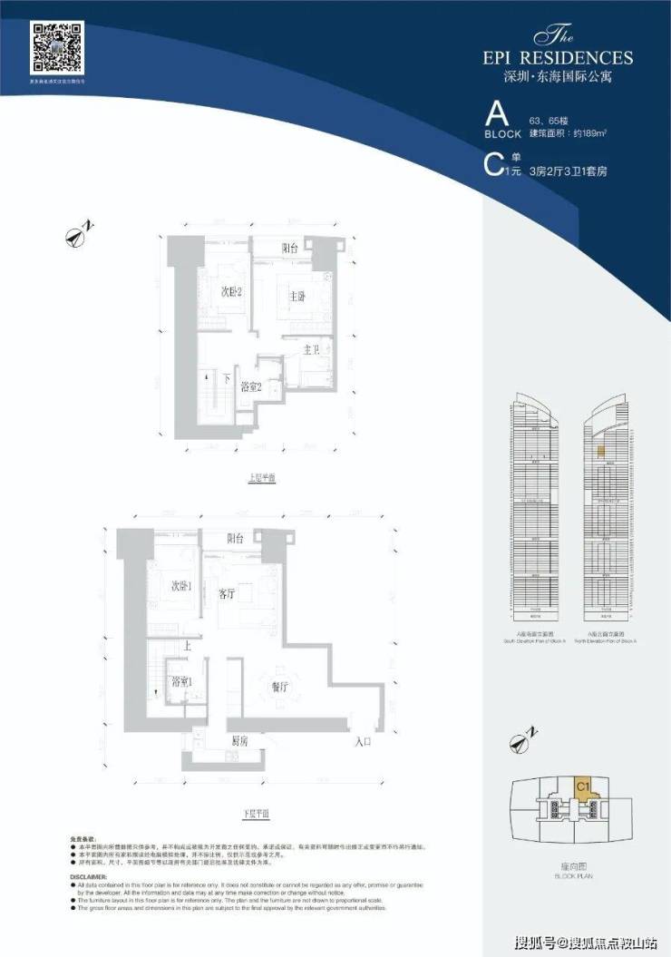 A座65层C单位,建面约188.97㎡,3房2厅3卫1套房