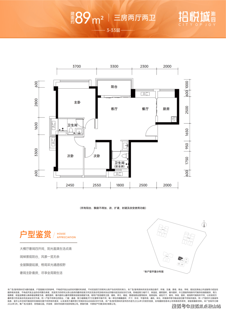 【全能户型】:建面约85-89㎡满配三房,通透采光 + 实用布局,适配家庭成长需求。