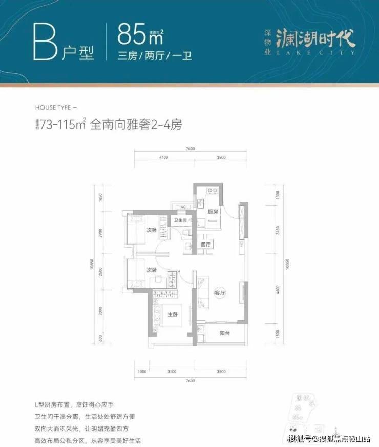 产品面积段:建面约73-115㎡全南宽奢2-4房