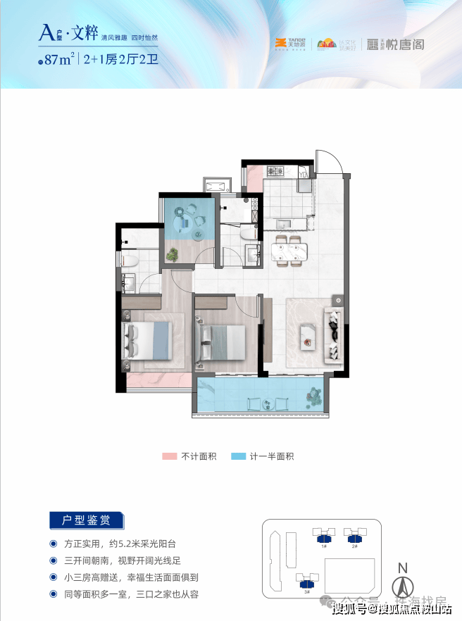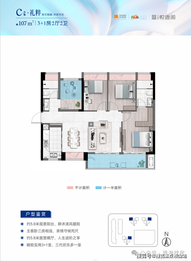 精粹社区,约87-107㎡精拓实用三至四房。创新L型建筑布局,无遮挡排布,户型方正,三面朝南,高空间利用率;超6米环幕大阳台,最宽123米超阔绰楼间距,将视野天赋发挥至极,海景和阳光不负尊享;全屋品质奢装,多点位人性化细节考量。电梯厅采光充足,整层平面布局提高公共空间尺度,彰显舒居生活。