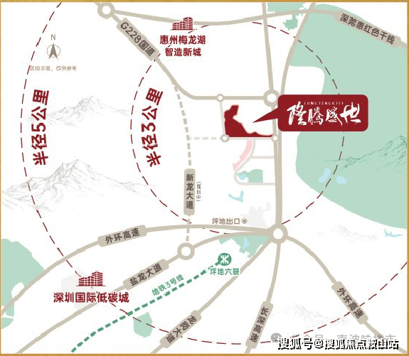 隆腾盛世,位于惠阳新圩,龙岗大道与东风路交汇处,雄踞深圳东进战略要地。新圩紧邻龙岗坪地街道。项目距离龙岗坪地仅一路之隔。享受着深圳的交通辐射红利。