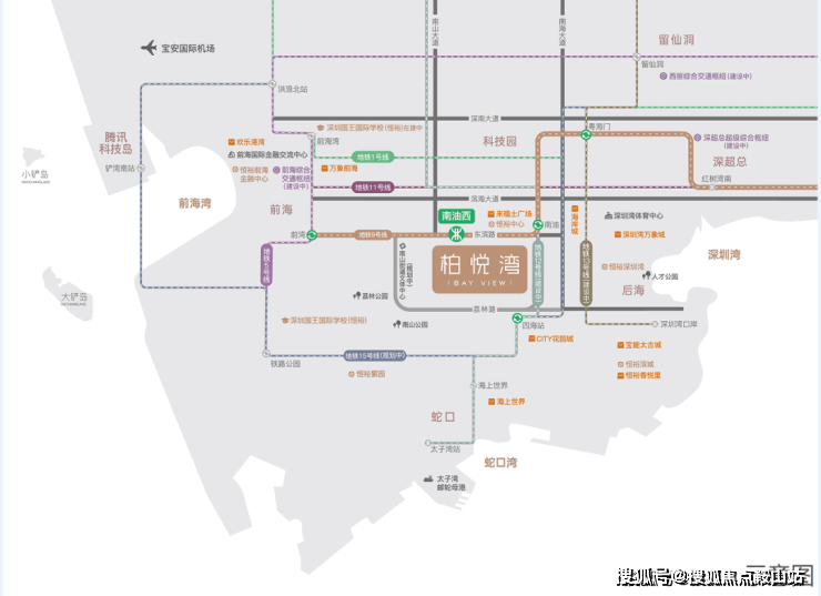 交通方面:·多维路网:东滨路、南海大道、南山大道、广深沿江高速、月亮湾大道、滨海大道等。