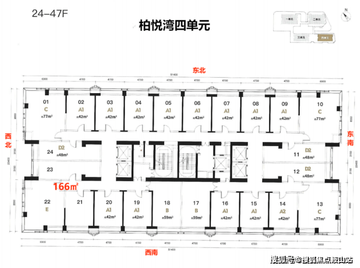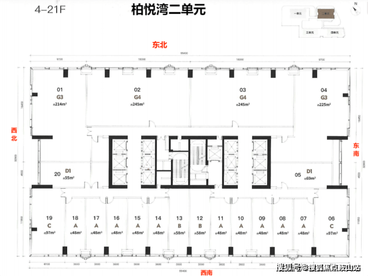 楼层高:1单元5-40层-2单4-43层元商办43层,3-4单元4-48层