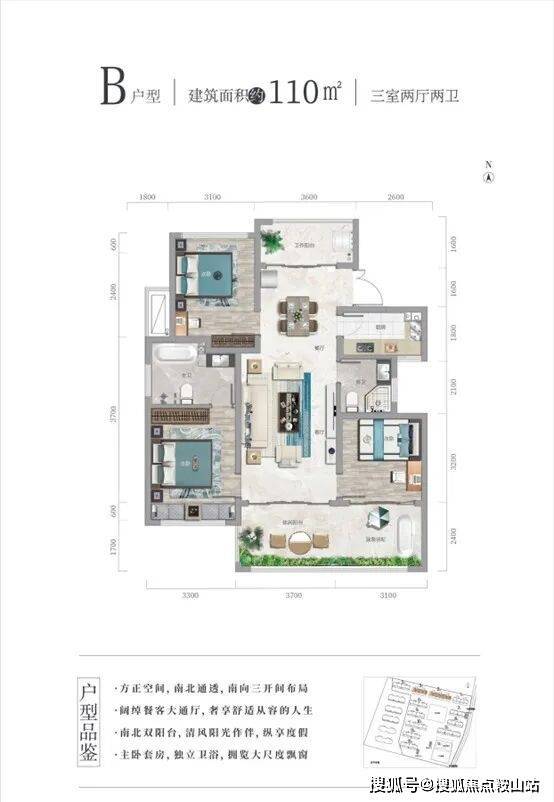 B 户型110㎡三室两厅两卫