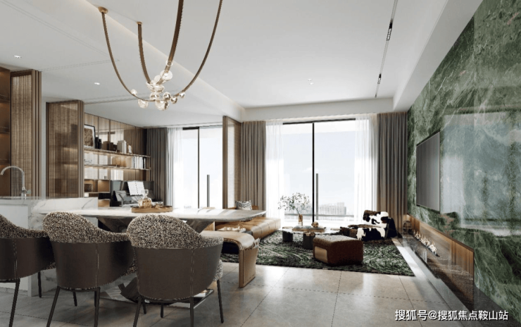除了首层的大堂区域,地下和空中也设有便捷大堂,将商业、办公、地铁、屋顶花园、机动车库和非机动车库便捷地连接起来。精心选择的材质,如石材、铝板、铝通等,打造出简约精致、高贵典雅的轻奢外观,结合精致的花园,构建出森系酒店化的归家场景。