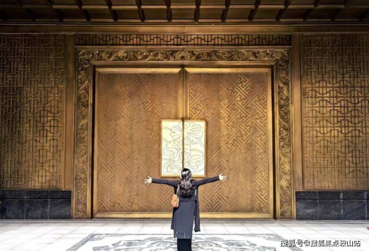 还有柚木打造的入户大门,以前是皇家专用,故宫大门用的就是这柚木;纯铜包边,汉白玉的门钹;门上雅致的纯铜匾额,亮晃晃三个大字“金尊府”;寓意十全十美的10枚门楣,地上铺的手工地雕……