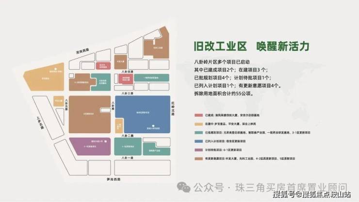 旧改工业区 唤醒新活力八卦岭片区多个项目已启动,其中已建成项目2个,在建项目3个,已批规划项目4个,列入计划项目1个,计划待批项目1个,有更新意愿项目4个。拆除用地面积合计约55公顷。