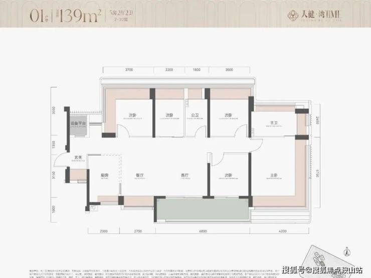 户型为113㎡四房114四房和139㎡五房约290套,2栋100米内30层住宅,2梯5户,其中主力为113㎡四房,整体以朝南及西南为主,有两套朝东北面向金众。