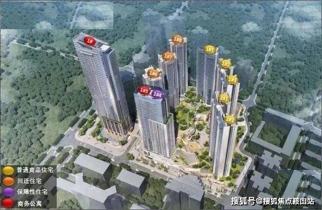其中1栋1单元/2单元/3单元和2栋1单元/2单元为商品房,1栋4单元为保障房,1栋5单元为商务公寓,1栋6单元/7单元/8单元为回迁房,3栋为幼儿园。