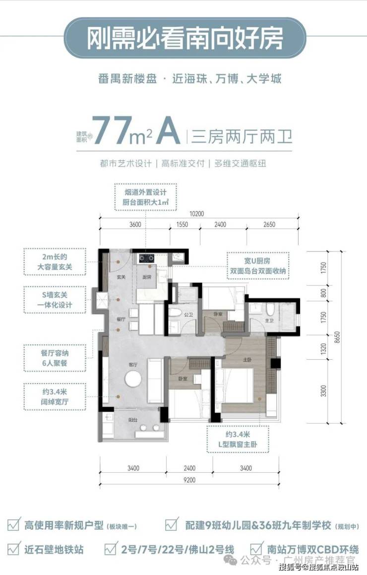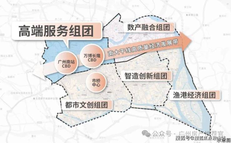 广州南站串联万博、长隆两大板块,以“超级枢纽+超级商圈”模式平移都市中心,南站8km范围聚集番禺70%的经济总量、70%的常住人口,拥有前沿的产业体系+集中的商业配套+宜居的生态资源+高效的通勤速度,是番禺最适合生活居住的组团,打造广州不可复制的“黄金动脉”。