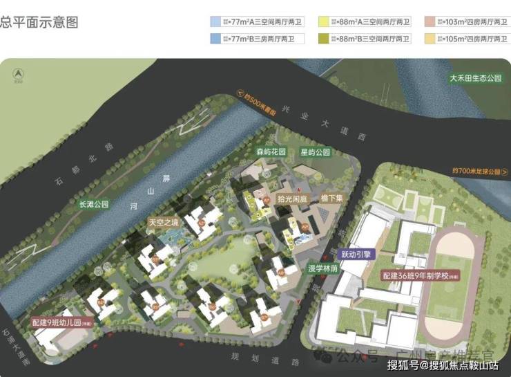 项目内规划有9班公办幼儿园,并引入36班九年制中小学校