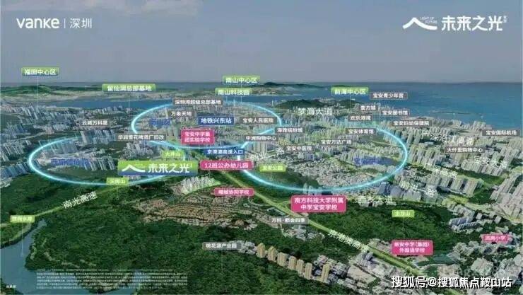 宝安-万科未来之光,地处宝安尖岗山,被定位为“新兴产业集聚带”,正积极引入数字经济、智能制造、新一代信息技术等高端产业。近邻南山科技园、留仙洞总部基地、宝安中心、前海自贸区等片区,集合向西发展带优质城市资源,是各高端科技产业直接辐射的腹地。