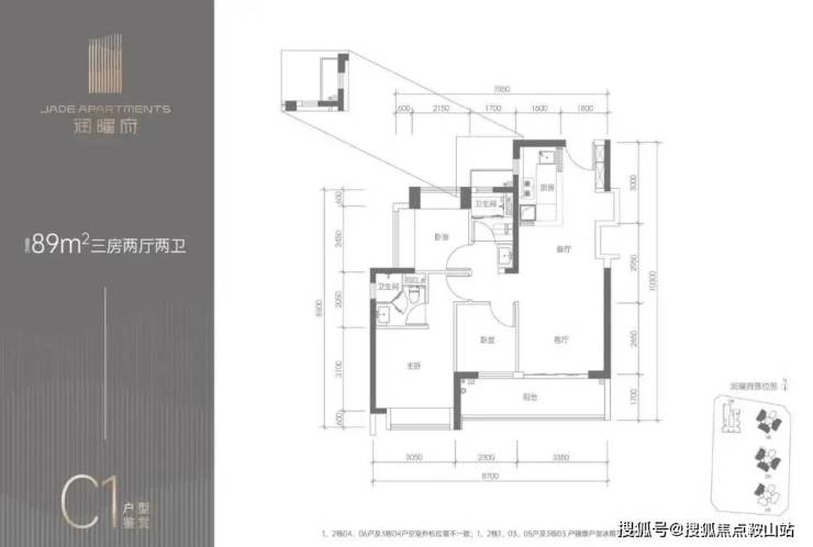 95平三房两卫 横厅