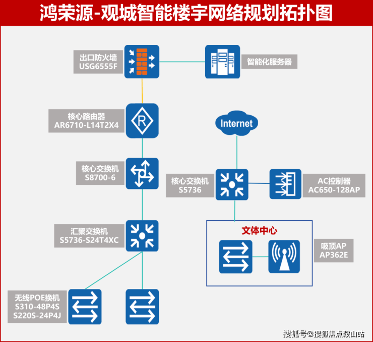 鸿荣源观城采用“住宅楼宇三层架构+文体中心独立二层组网”模式,打造了一张核心强健、接入灵活的智慧社区网络。