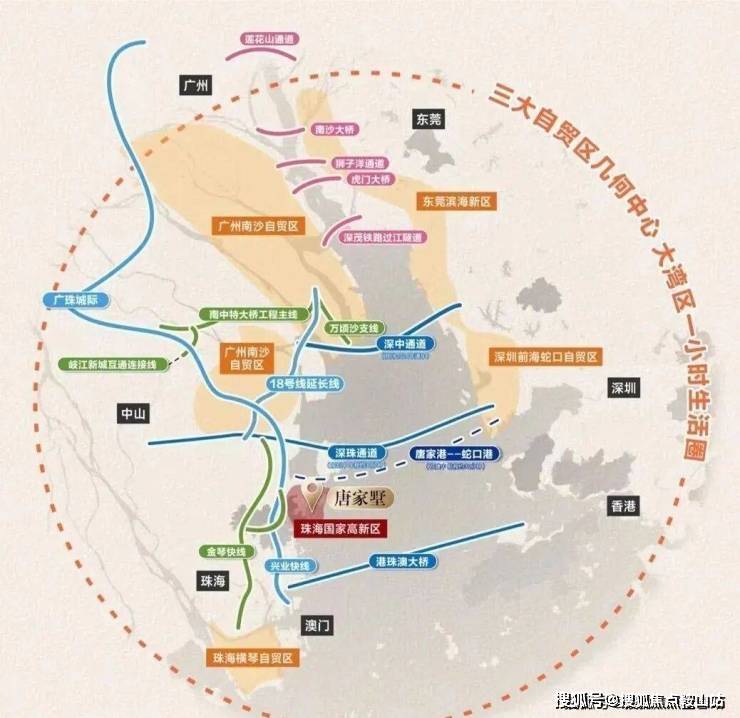 深珠通道接驳处,与深圳前海仅一桥之隔,深中通道、18号轻轨延长线等交通路网,实现珠海横琴自贸区、广州南沙自贸区和深圳前海蛇口自贸区三大自贸区几何中心构建大湾区一小时生活圈
