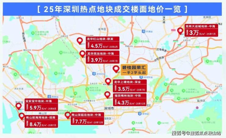 25年地价普涨,龙岗约3万,龙华3.5万-4.5万,福田梅林4.3万,宝中5.9万,南山7.7-8.4万元/㎡,均高于本项目新房售价。