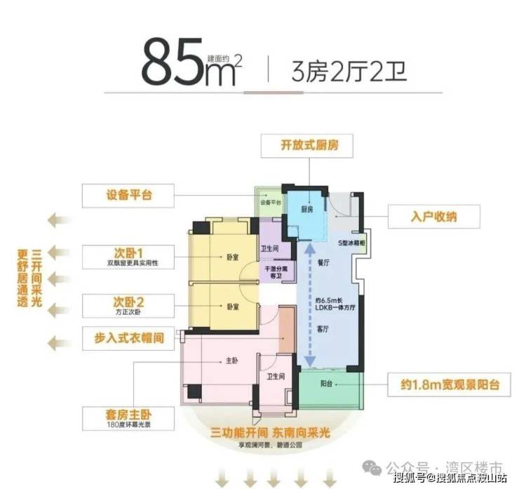 【户型面积】约75-85㎡3房2卫,约94-105㎡4房2卫