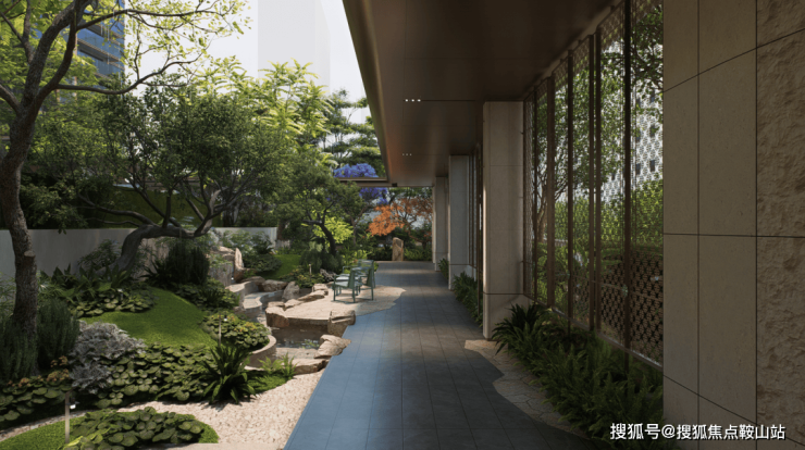 项目园林还设置了风雨连廊,形成连续的归家场景;在这里,无论日晴或风雨,皆可观景;归家路上的片刻小憩,或沉浸其中或与邻里交谈,温暖的归属感油然而生。
