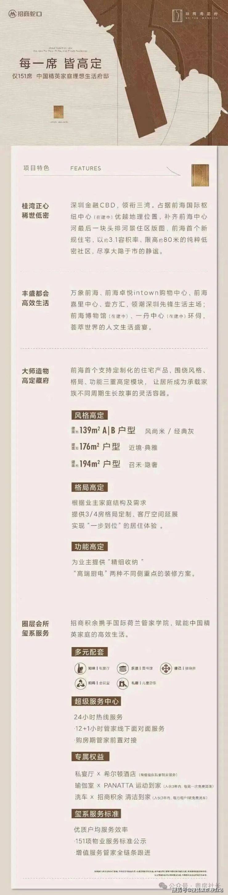 推出2栋、3栋约108套约139-176-194㎡四房以上户型,预计2027年底精装交付。这是前海首个支持定制化的住宅产品,风格/格局/功能都可以定制。