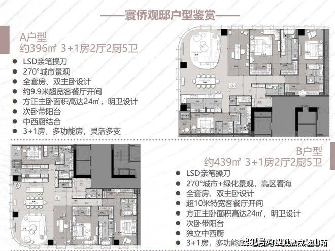 荟萃CCD、柏朗国际两大设计团队联袂匠造,以国际化视野,精研侨城湾芯云端新作,仅28席,位于建筑23-29层,全高区景观视野,建面约323-446㎡,纯粹大户云端居所。4款室内设计风格独特,尺度阔绰,兼顾细致实用,畅享舒适空间。