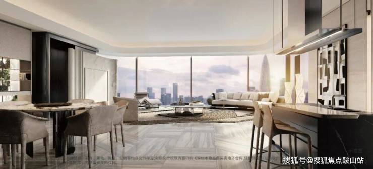 为了让每户均能实现超总城市景观最大化,中海地产充分展示了结构力学的先进设计,整屋承重柱占比极少,尤其是客厅整体景观面的无柱化设计,令“约270°无界”绽放超总之上,开创了深圳超高层住宅空间形态的全新时代。