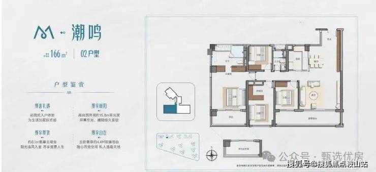 约8.1m宽幕主阳台,内可望园景 外可望江景+城景南向四开间约15.8m+主卧约4.4M观景阳台