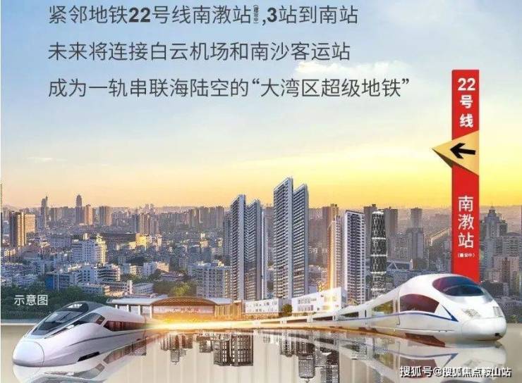 第二点:我们可以通过22号线,项目可以连接到机场、白云棠溪、广州火车站、南站、庆盛站等7大枢纽,一口气拥抱了广州最重要的空港、海港以及铁路枢纽群,价值制高点超乎想象。