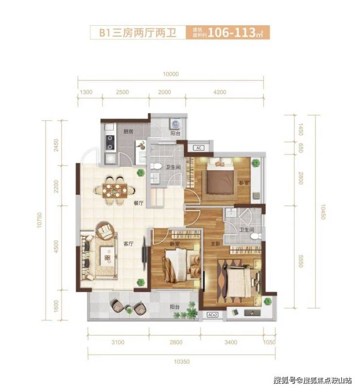 B1户型:106-113㎡3房2厅2卫