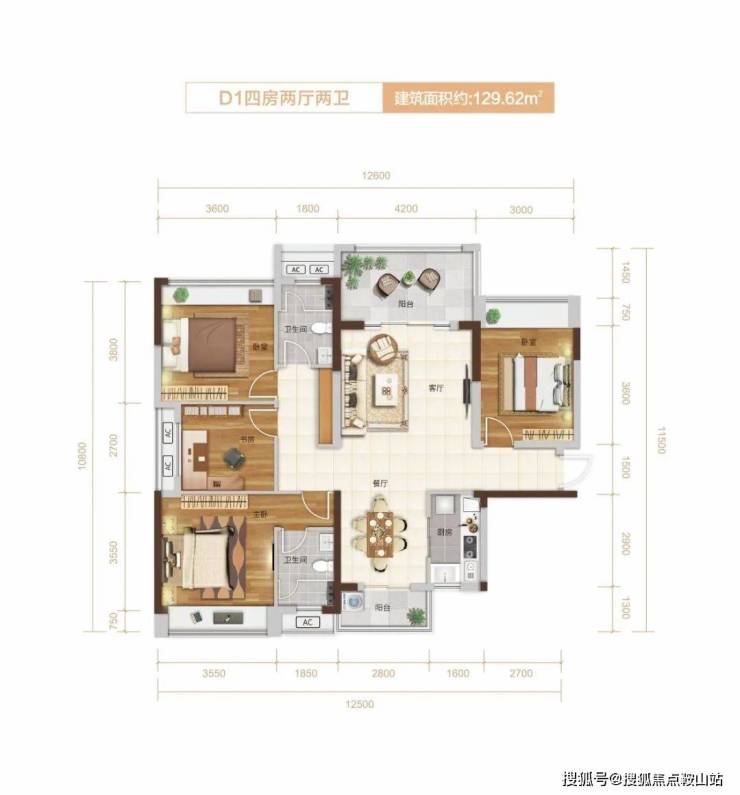 D1户型:129㎡4房2厅2卫