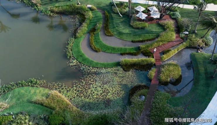 峡谷西侧7期作为最欢乐热闹的溪谷公共活动区,由庆典草坪、金色池塘、雨林商业街、亲子戏水区组成。金色池塘借助自然的高差错落,塑造了一处野趣梯田池塘,日闻蝉鸣,夜听蛙声。彼岸是雨林风情商业街,美轮美奂的夕阳观赏点,阳光照在池塘上,泛起粼粼金光。