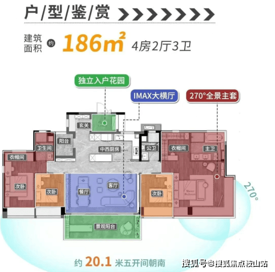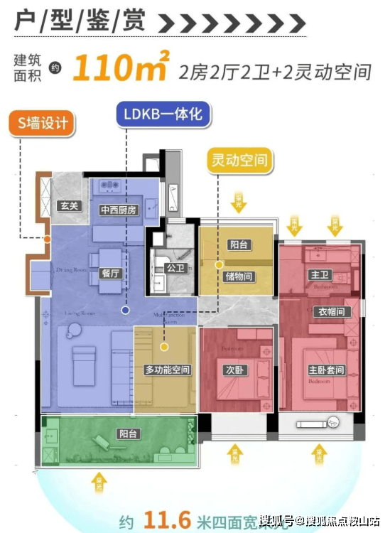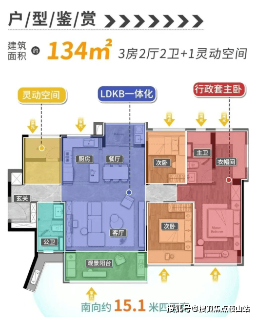 项目主力户型涵盖110㎡三房、134㎡三房及186㎡三房(均带两卫),虽标注为三房,实则空间尺度堪比传统四房。110㎡户型三开间朝南,观景面达11.6米,开间5.7米,实用率极高;134㎡采用LDK一体化设计,四开间朝南,南向采光面宽达14米,观景面约15.6米;186㎡户型通过扁平化布局,缩短进深、拉伸开间,最大化引入白云山景观与自然光线。所有户型均按豪宅标准打造,强调视野、通透与舒适度。