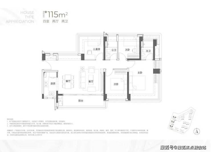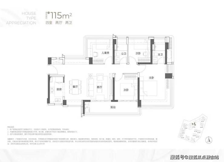 建面约115㎡4房2卫