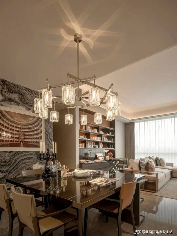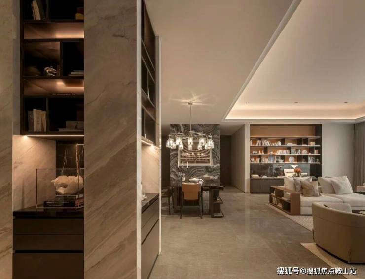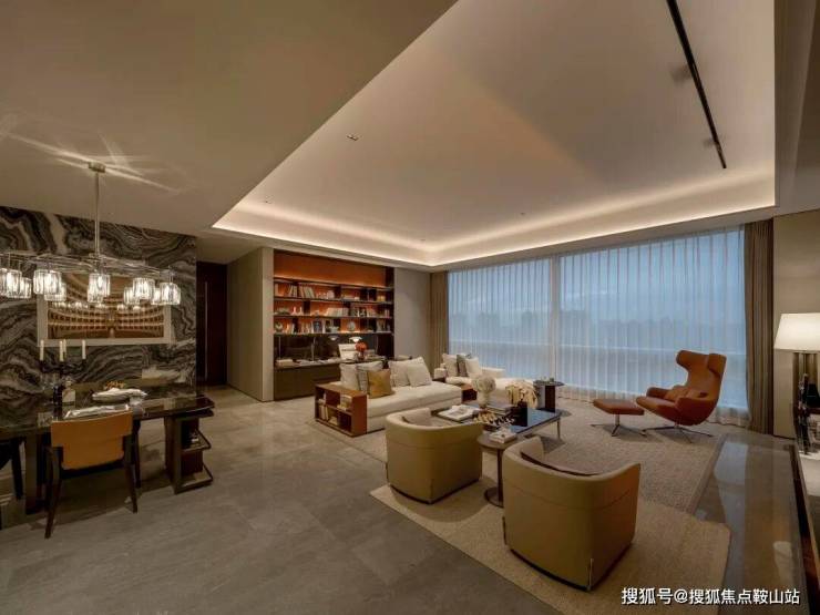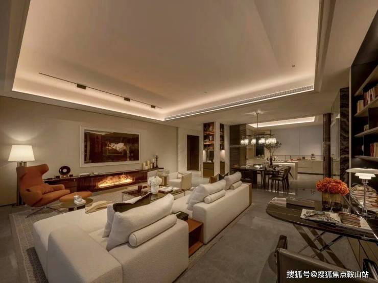 去中心化的“群岛式”客厅,传统的沙发区域以多个组团并存的形式存在。如海中的群岛互相关联。照明配合组团也以多种聚落形式出现。