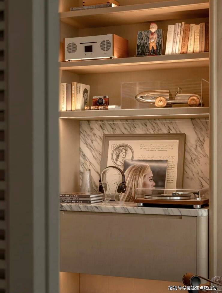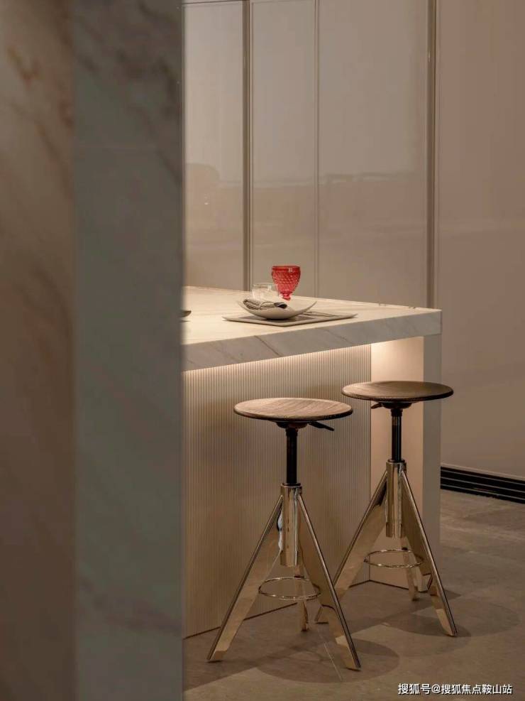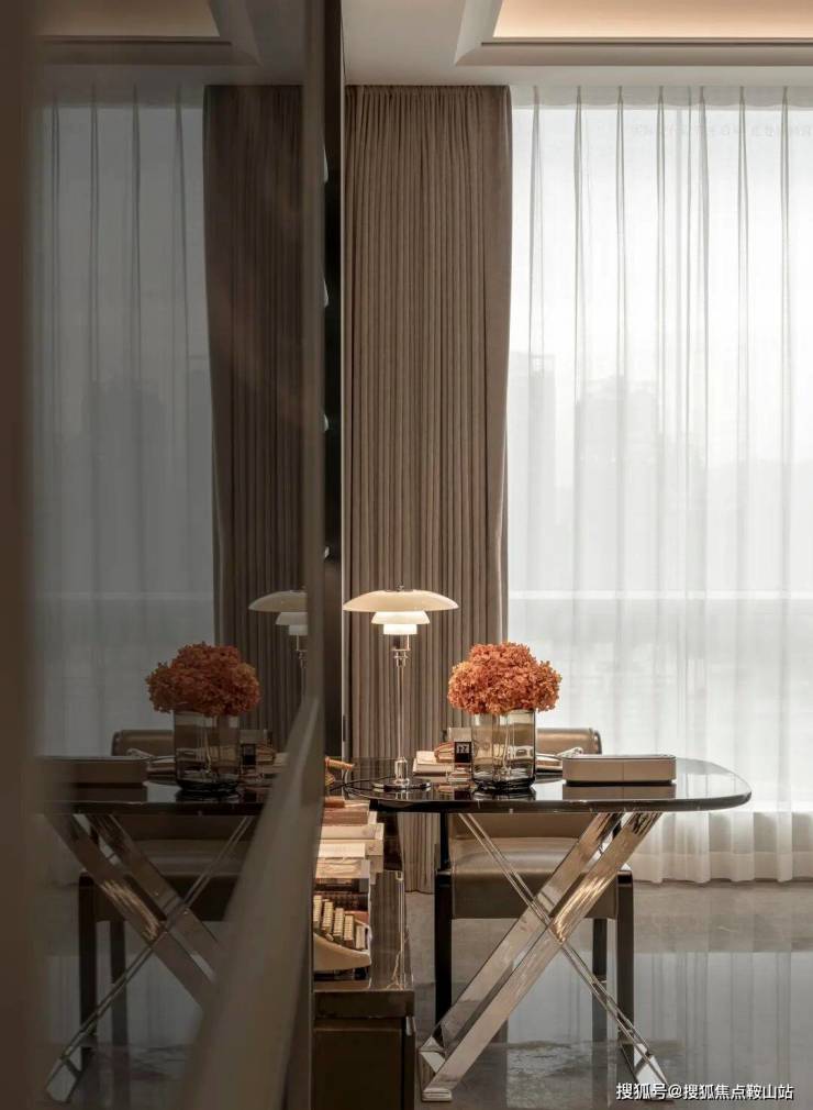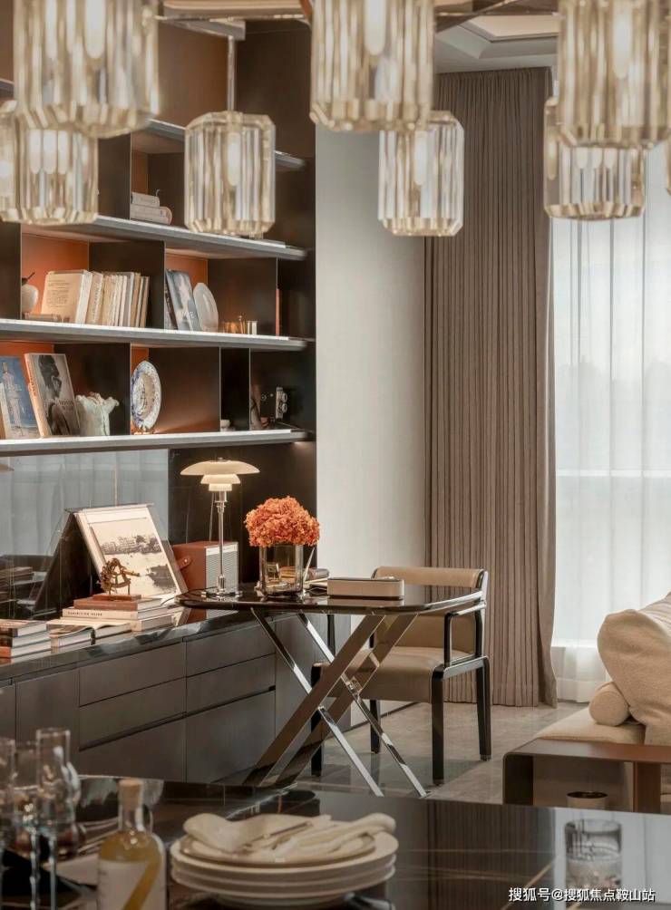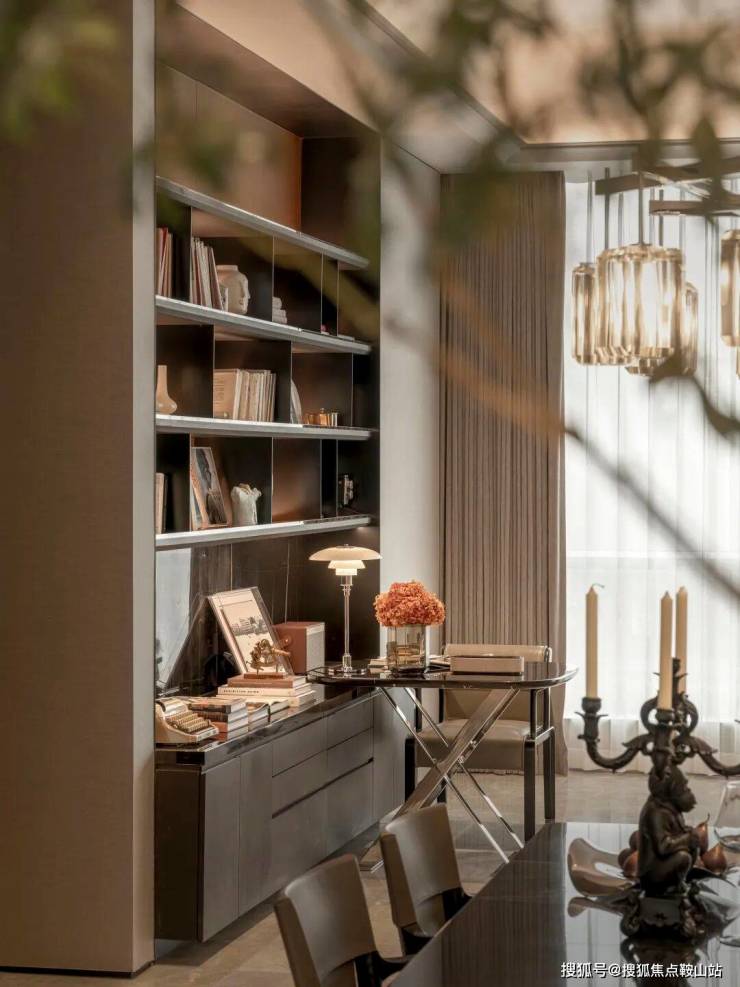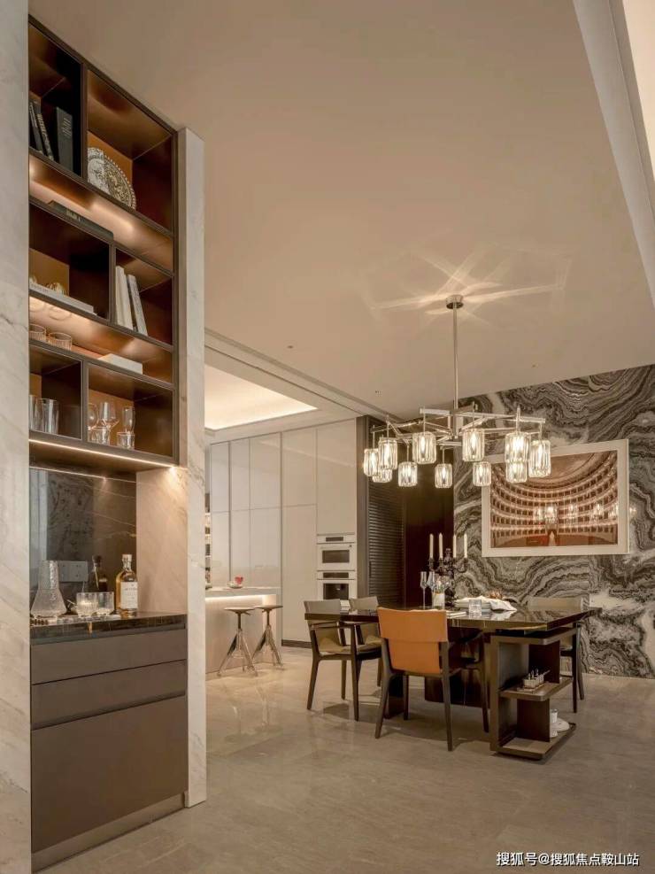 整个户型经设计优化后呈现明显的”去中心化“特点。从玄关开始,其公共部分包括客厅、餐厅、厨房、休闲读书区域都融合在一个互融互通的空间中,以多组团互相叠加的方式打破传统的视觉中心模式。这个空间,让家更有亲近感。