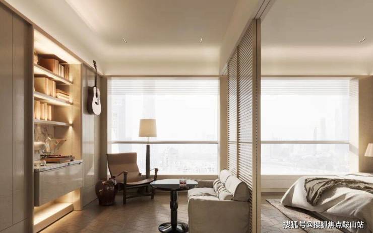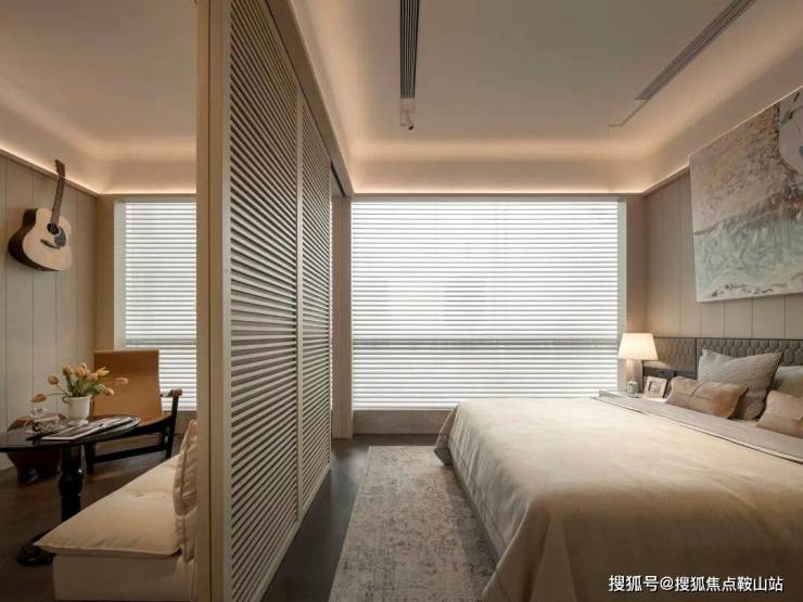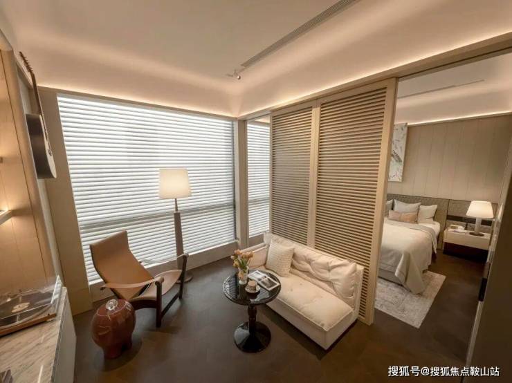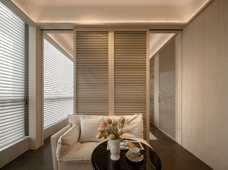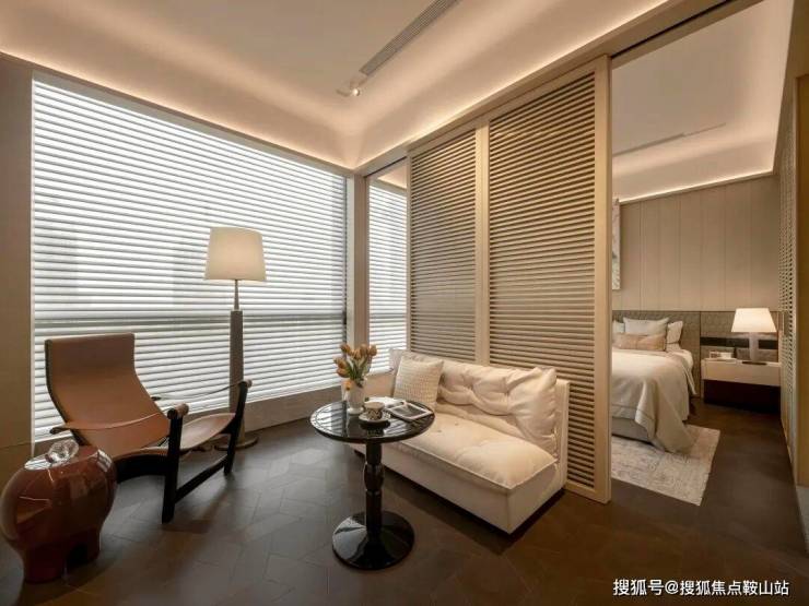 另一个卧室套间,则融合了一个小小的私密起居厅。通过移门,可以灵活归属公共空间或者卧室区域。它为卧室主人留下一片自由想象之地,能实现多种使用场景。