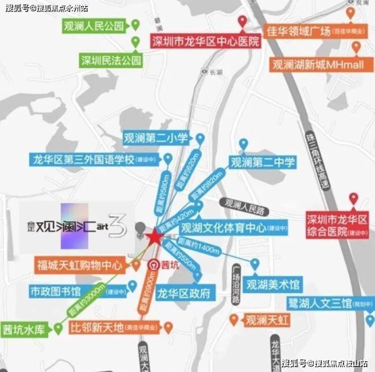 合正观澜汇分三期开发拆迁用地124281.8㎡,云境、云庭地块共分10栋开发,含超高层住宅、酒店、商业、21班幼儿园等配套设施。区域价值;项目交通;地铁:4号龙华线延长线茜坑站B出口、18号线(规划)、22号线(规划)。有轨电车:一号线锦鲤站。
