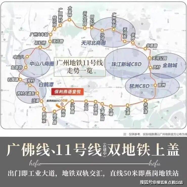 地铁:双地铁上盖,线路四通八达,项目直线50m就是燕岗地铁站。第一广佛线,已开通,可以链接佛山新城、千灯湖、荔湾芳村等区域。第二就是11号线,今年开通,广州首条环线,换乘之王,可以链接全城。