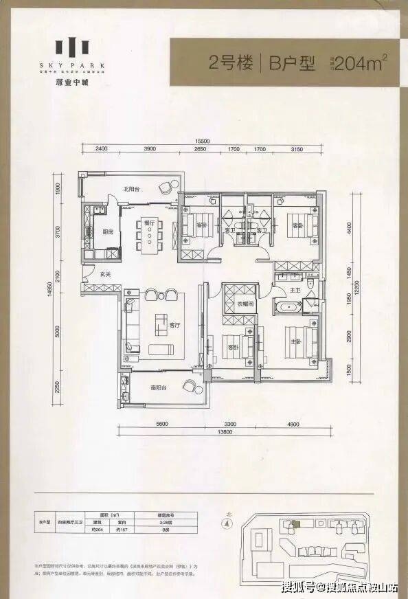 206㎡四房:格局周正,双卧带独卫,客厅开阔,视野佳;