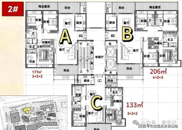 177㎡三房:可改四房,动静分区,低区临近商业略影响采光;
