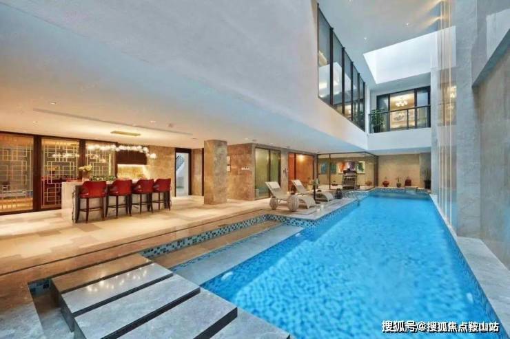泳池利用通透的亚克力玻璃制造“无边界”的视觉感,更是创意生活的一大绝妙亮点。