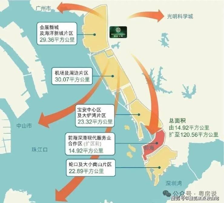 🌁前海展翼:宝安作为湾区发展的桥头堡和主力军,深挖城市发展潜力,明确三城发展目标在前海“扩区”重磅落地之后,宝安1/5的范围加入前海,前海2/3的范围落在宝安,宝安一跃成为国家战略主战场。