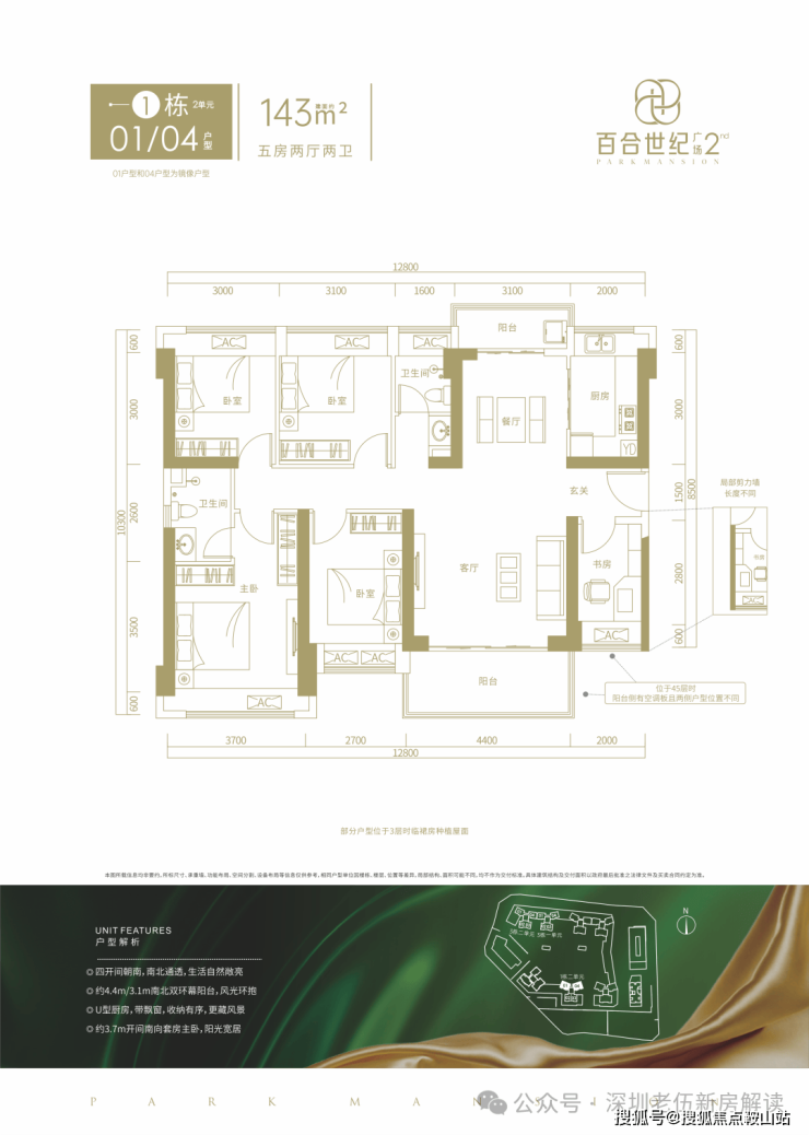 【产品面积】主力产品 建面约 98-143 ㎡ 3-5房(一期 174 ㎡阔绰 5 房热售中)