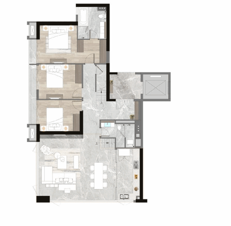 这样的空间尺度感远远超过同面积段的大平层,甚至可以比肩300平以上的户型。