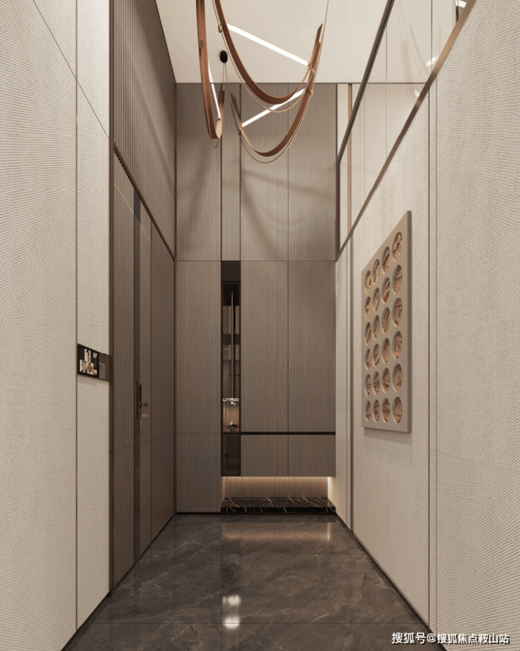 归家第一步就是超6㎡的私家入户电梯厅,近似入户花园设计,可以增加置物台和鞋柜等,使用率超强,实实在在的收纳功能和私密感并存,豪宅应有的仪式感分毫不减。