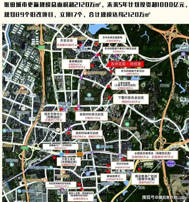 坂田,未来5年计划投资超1000亿元,推动约89个旧改项目,总面积超2120万㎡,相当于3倍福田CBD体量、6倍白石洲旧改体量!华侨城、万科、碧桂园、信义、保利等品牌开发商抢滩进驻,推动区域焕新升级。