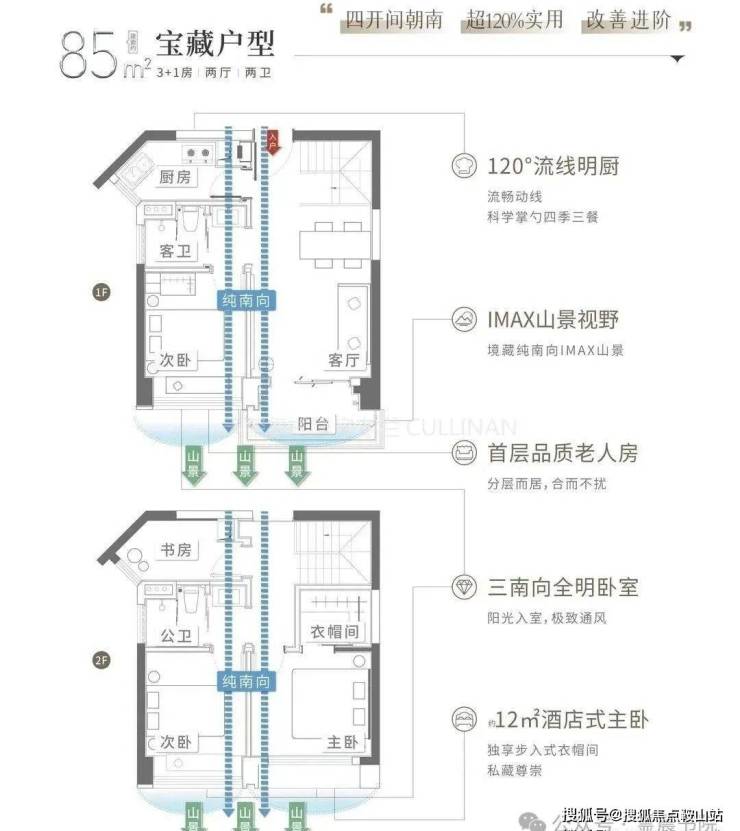 建面约85-120㎡为4-5房复式洋房,实用率超120%