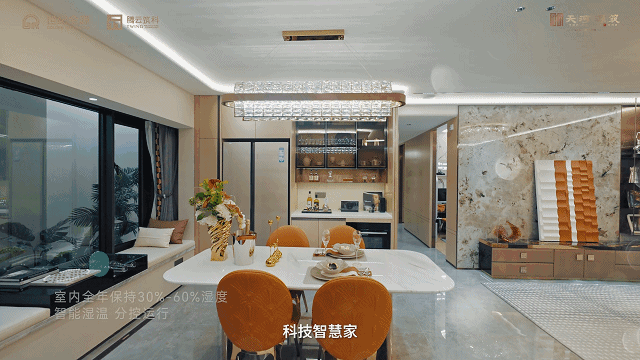 通风效果:全南向板式大平层设计配合南北双阳台,形成了良好的穿堂风。无论是炎热的夏季,还是潮湿的回南天,都能保持室内空气的流通与清新。